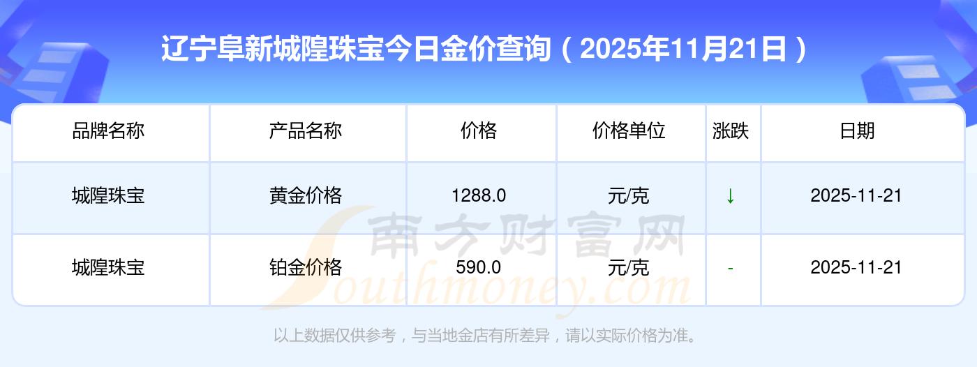 2025年11月21日城隍珠宝金条多少钱1克 现在辽宁阜新城隍珠宝黄金价格查询