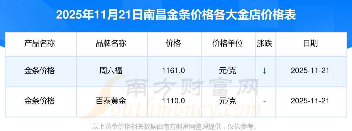 饰品一克便宜几十块了嘛?2025年11月21日南昌各金店金条价格最新一览表