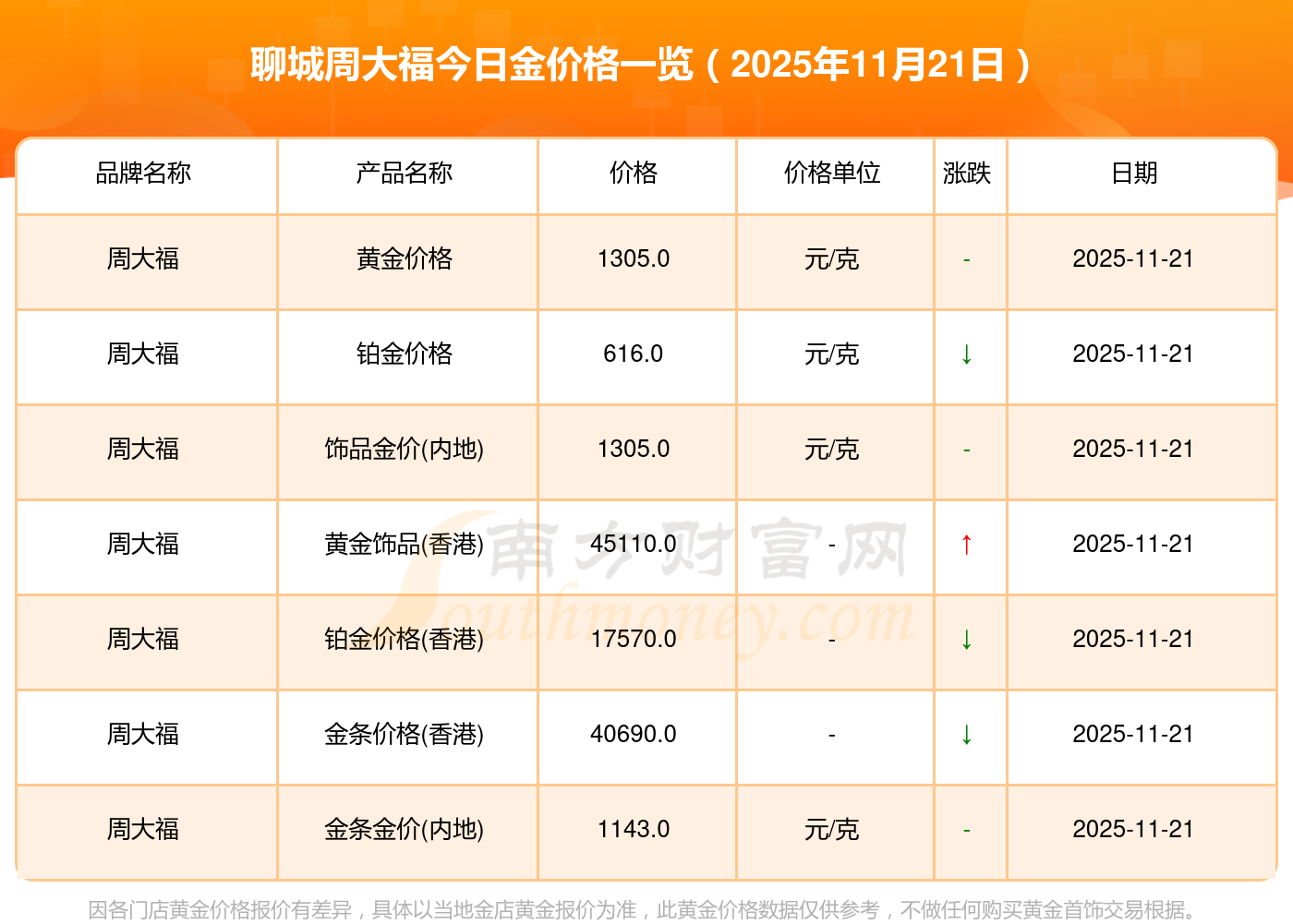 黄金价格1305.0元/克,铂金价格616.0元/克,饰品金价(内地)1305.0元/克,黄金饰品(香港)45110.0,铂金价格(香港)17570.0,金条价格(香港)40690.0,金条金价(内地)1143.0元/克,黄金价格1298.0元/克,铂金价格600.0元/克,足金价格1298.0元/克,黄金价格1266.0元/克。