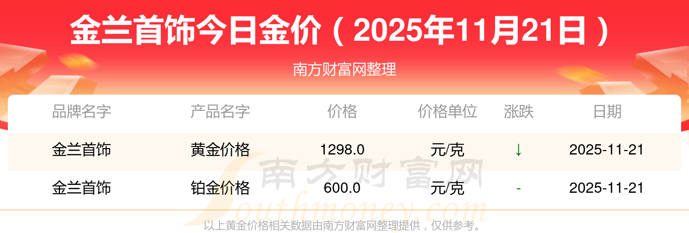2025年11月21日金兰首饰金条多少钱1克 现在山西太原金兰首饰黄金价格查询