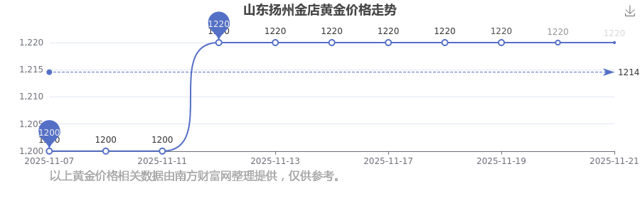 今日山东扬州金店黄金价格查询,今日山东扬州金店黄金价格为1220.0元/克。