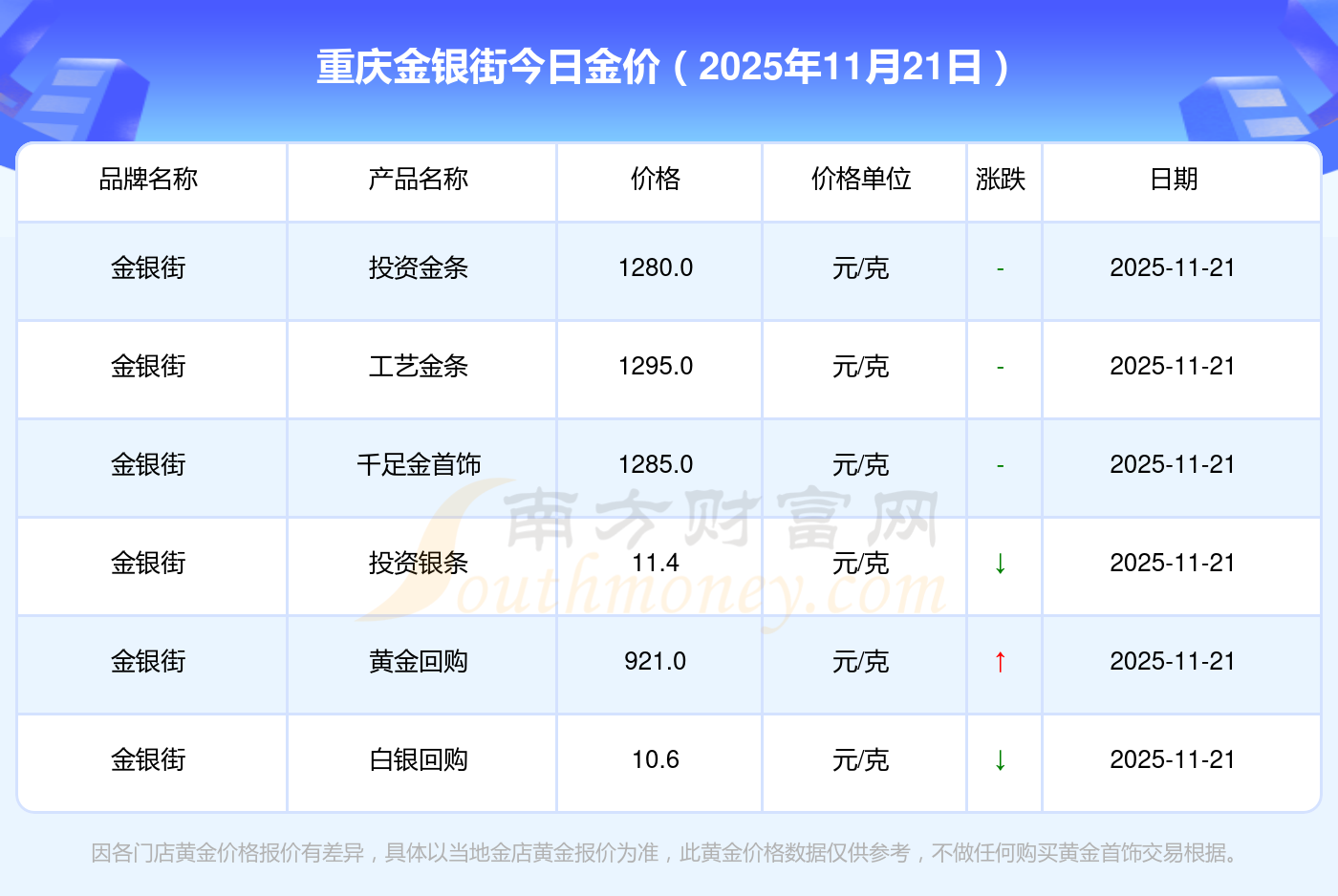 重庆金银街黄金价格表最新2025年,现在重庆金银街黄金价格是多少钱1克?