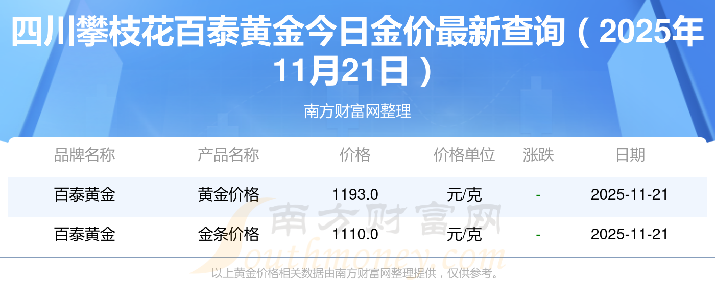 今日黄金售价是多少呢?此刻每克黄金价钱怎样?2025年11月21日四川攀枝花百泰黄金黄金按克计价,现在多少钱一克?黄金价格1305.0元/克,铂金价格616.0元/克,饰品金价(内地)1305.0元/克,黄金饰品(香港)45110.0,铂金价格(香港)17570.0,金条价格(香港)40690.0,金条金价(内地)1143.0元/克,黄金价格1298.0元/克,铂金价格600.0元/克,足金价格1298.0元/克,黄金价格1266.0元/克。