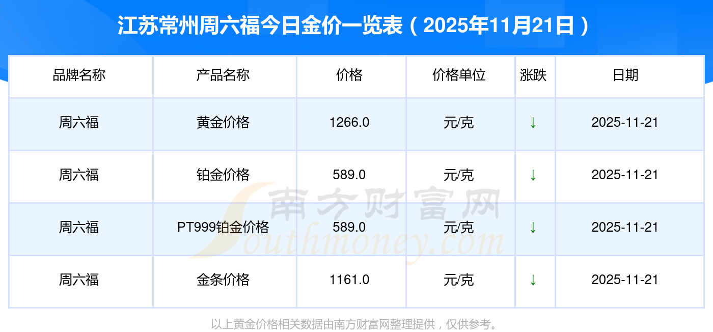 2025年11月21日江苏常州周六福黄金一克的市场行情价是多少?黄金价格1305.0元/克,铂金价格616.0元/克,饰品金价(内地)1305.0元/克,黄金饰品(香港)45110.0,铂金价格(香港)17570.0,金条价格(香港)40690.0,金条金价(内地)1143.0元/克,黄金价格1298.0元/克,铂金价格600.0元/克,足金价格1298.0元/克,黄金价格1266.0元/克。