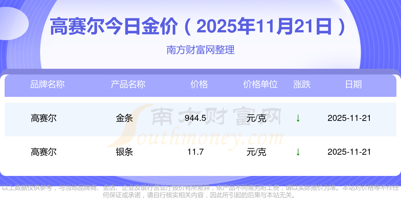 2025年11月21日高赛尔金条多少钱1克 现在上海高赛尔黄金价格查询