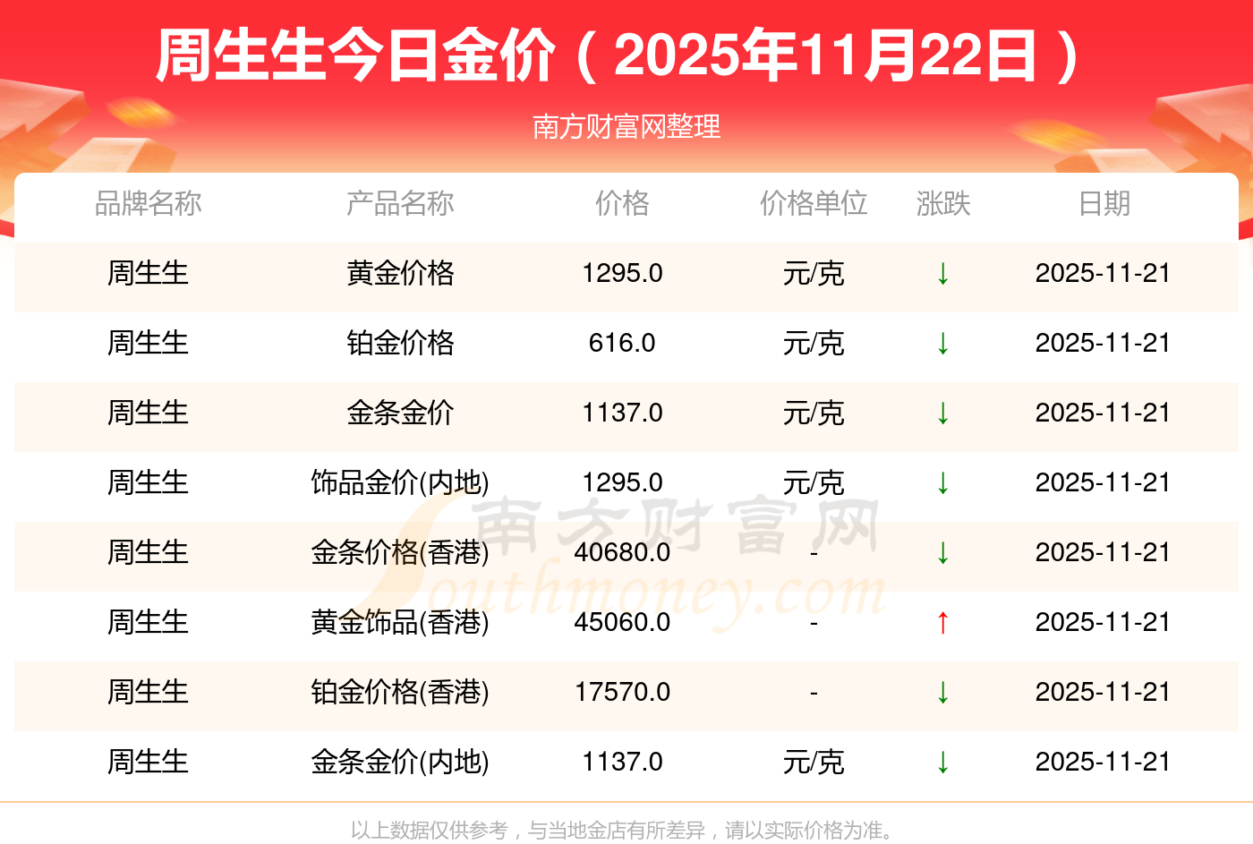 黄金价格1305.0元/克,铂金价格616.0元/克,饰品金价(内地)1305.0元/克,黄金饰品(香港)45110.0,铂金价格(香港)17570.0,金条价格(香港)40690.0,金条金价(内地)1143.0元/克,黄金价格1298.0元/克,铂金价格600.0元/克,足金价格1298.0元/克,黄金价格1266.0元/克。