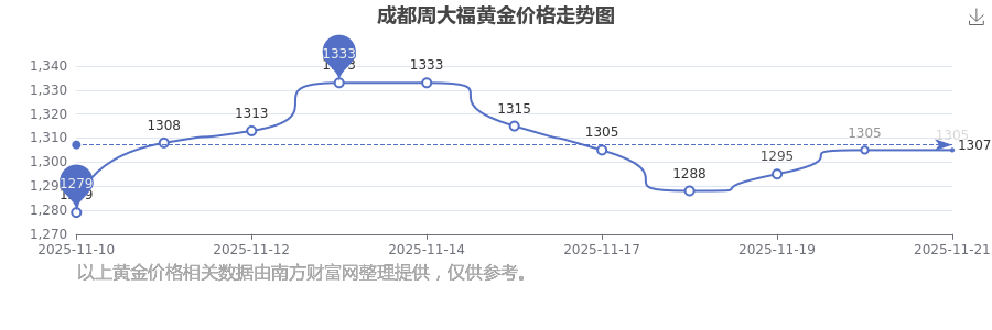 今日成都周大福黄金价格最新为:1305.0元/克。