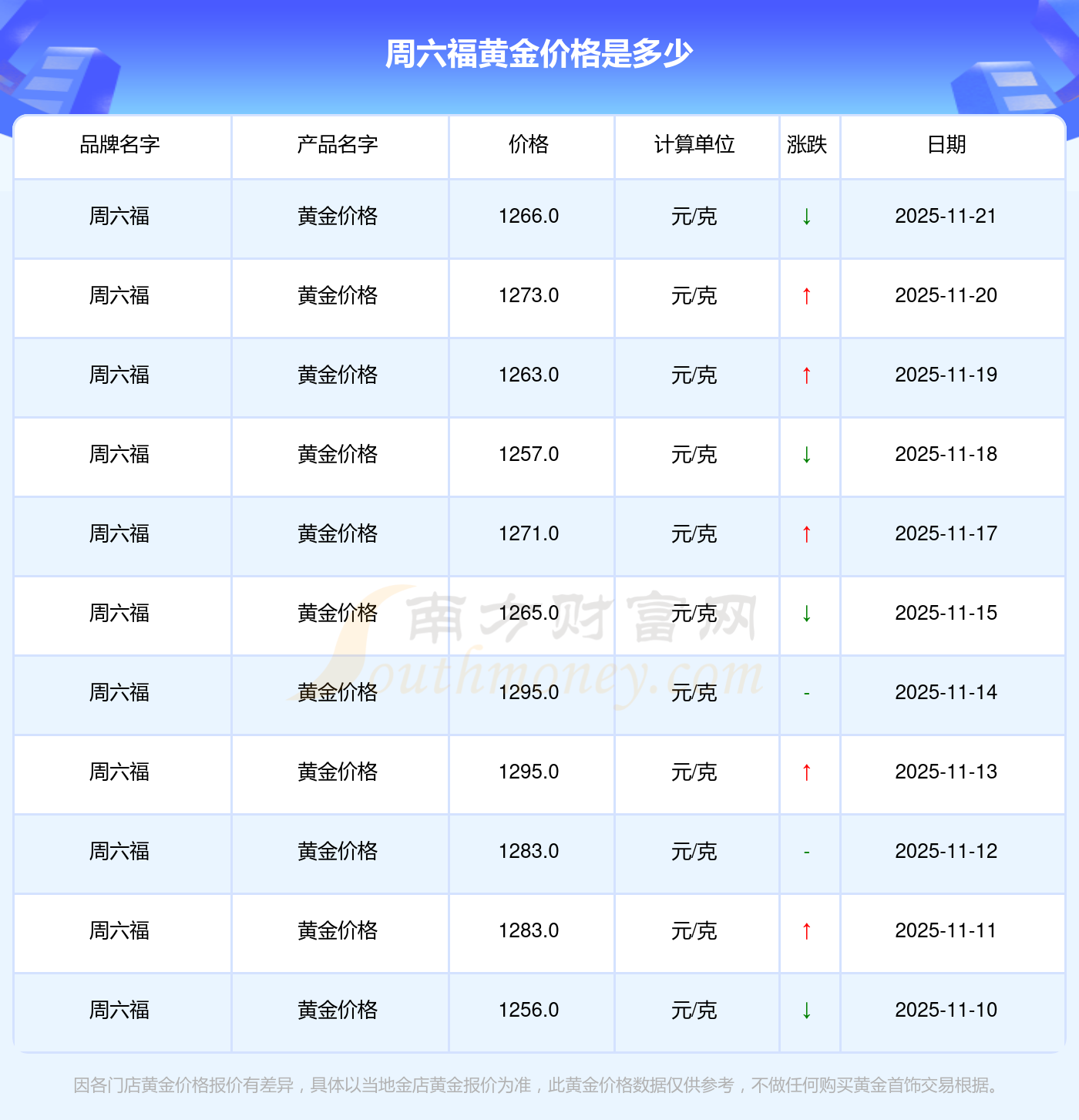 今日黄金价格查询_现在金价黄金一克多少钱,黄金价格是多少钱一克?平常,一克黄金的售价大概在多少范围?今日周六福 黄金价格最新的克重售价为1266.0元/克。