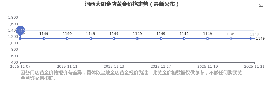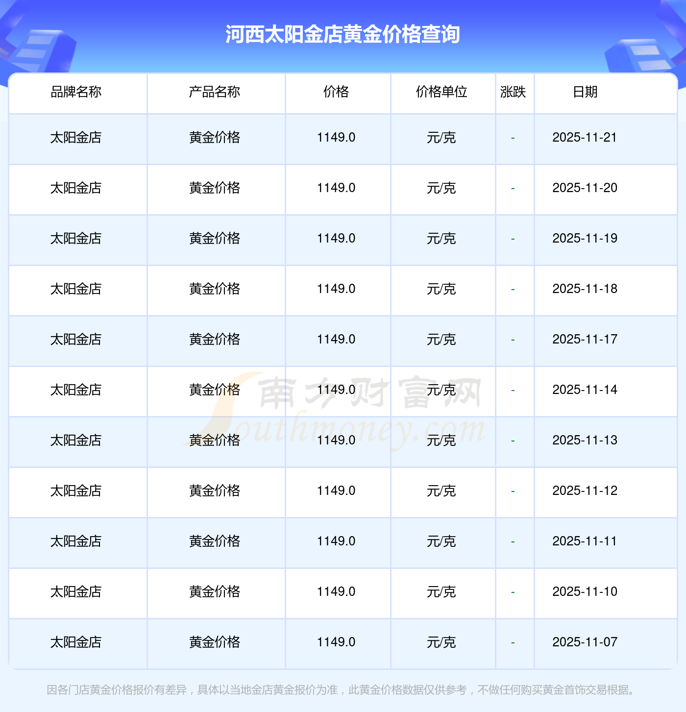 今日(2025年11月22日),1149.0元/克是河西太阳金店黄金价格的价格标准。