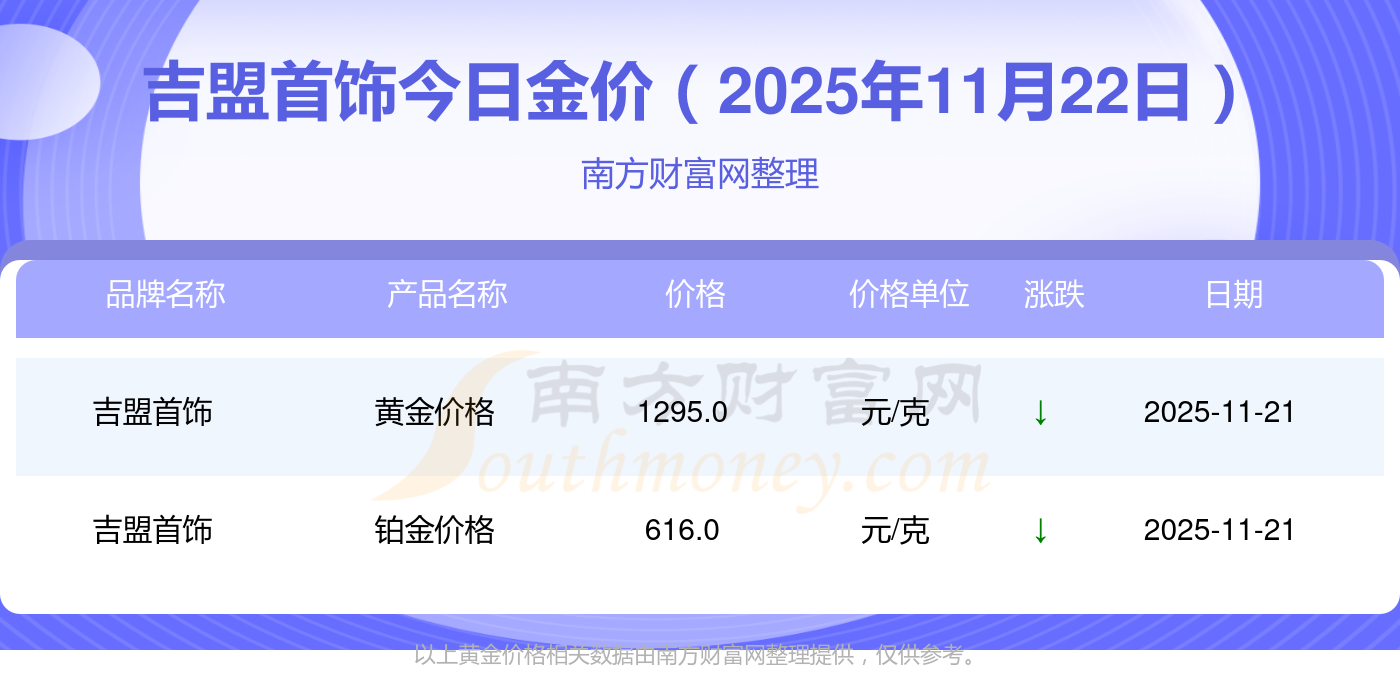 2025年11月22日,周大福、周大福、周大福、周大福、周大福、周大福、周大福、老凤祥、老凤祥、老凤祥、周六福等各大金店品牌黄金价格今日价格如下:周大福1305.0元/克、周大福616.0元/克、周大福1305.0元/克、周大福45110.0、周大福17570.0、周大福40690.0、周大福1143.0元/克、老凤祥1298.0元/克、老凤祥600.0元/克、老凤祥1298.0元/克、周六福1266.0元/克。