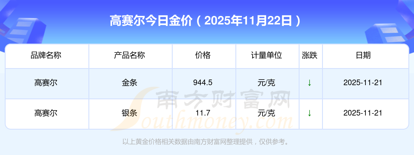 高赛尔今日金价查询