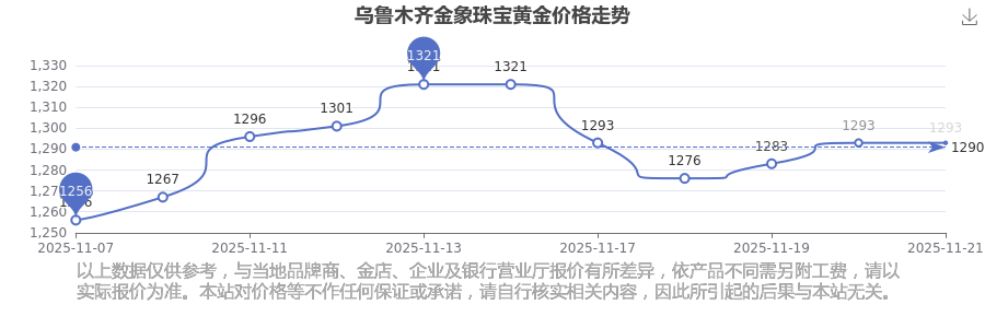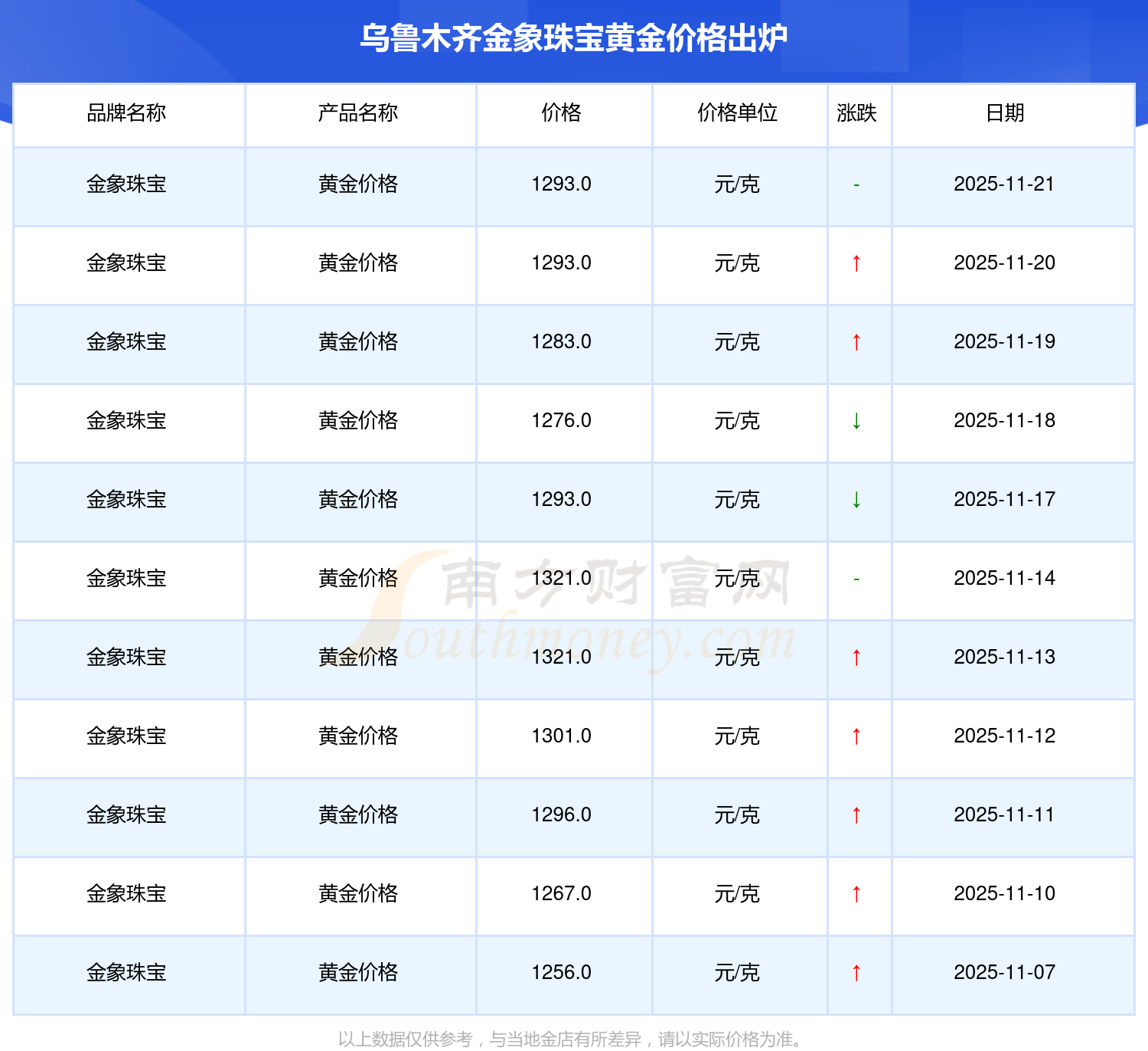 乌鲁木齐金象珠宝黄金价格每克多少钱,请问今日一克黄金的零售价格是多少?今日乌鲁木齐金象珠宝黄金价格查询,今日(2025年11月22日),乌鲁木齐金象珠宝黄金价格:1293.0元/克。