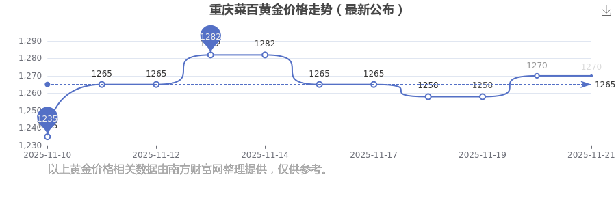 1270.0元/克,这是重庆菜百于 2025年11月22日所定的黄金价格。