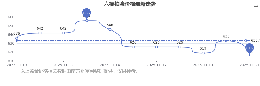 当下,六福 铂金价格今日的最新价格是616.0元/克。