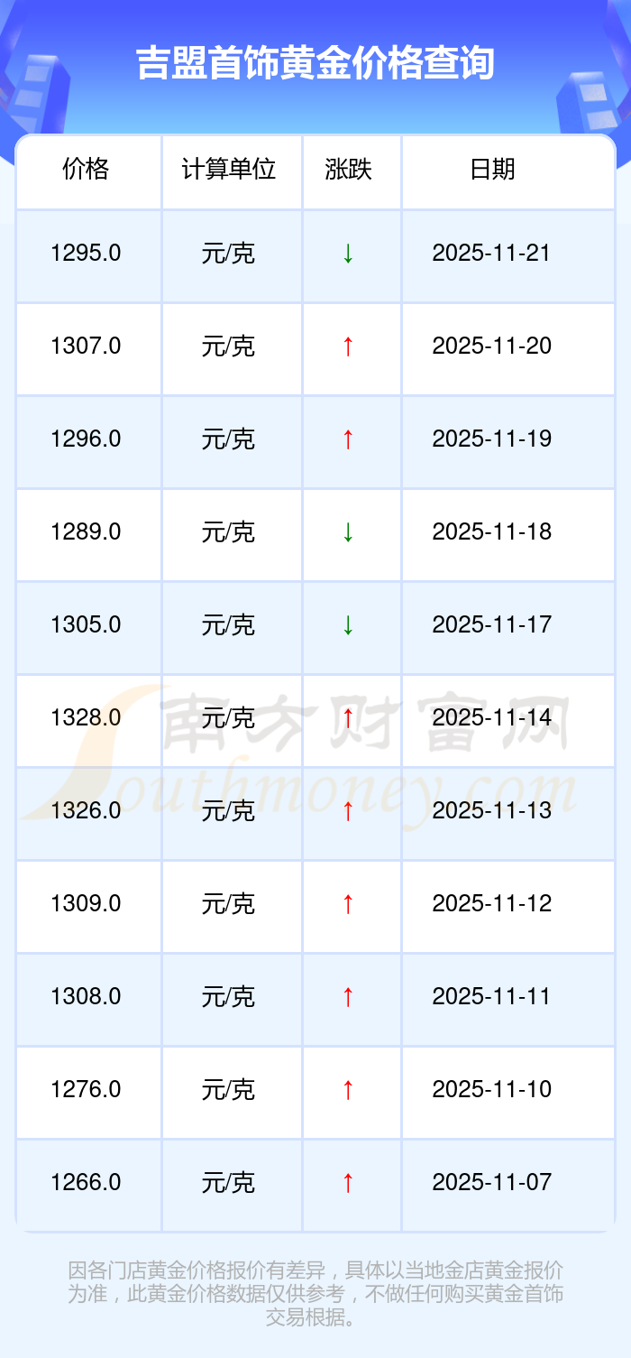 2025年11月22日吉盟首饰黄金价格今日价格_黄金价格多少钱一克,一起来看看吧!