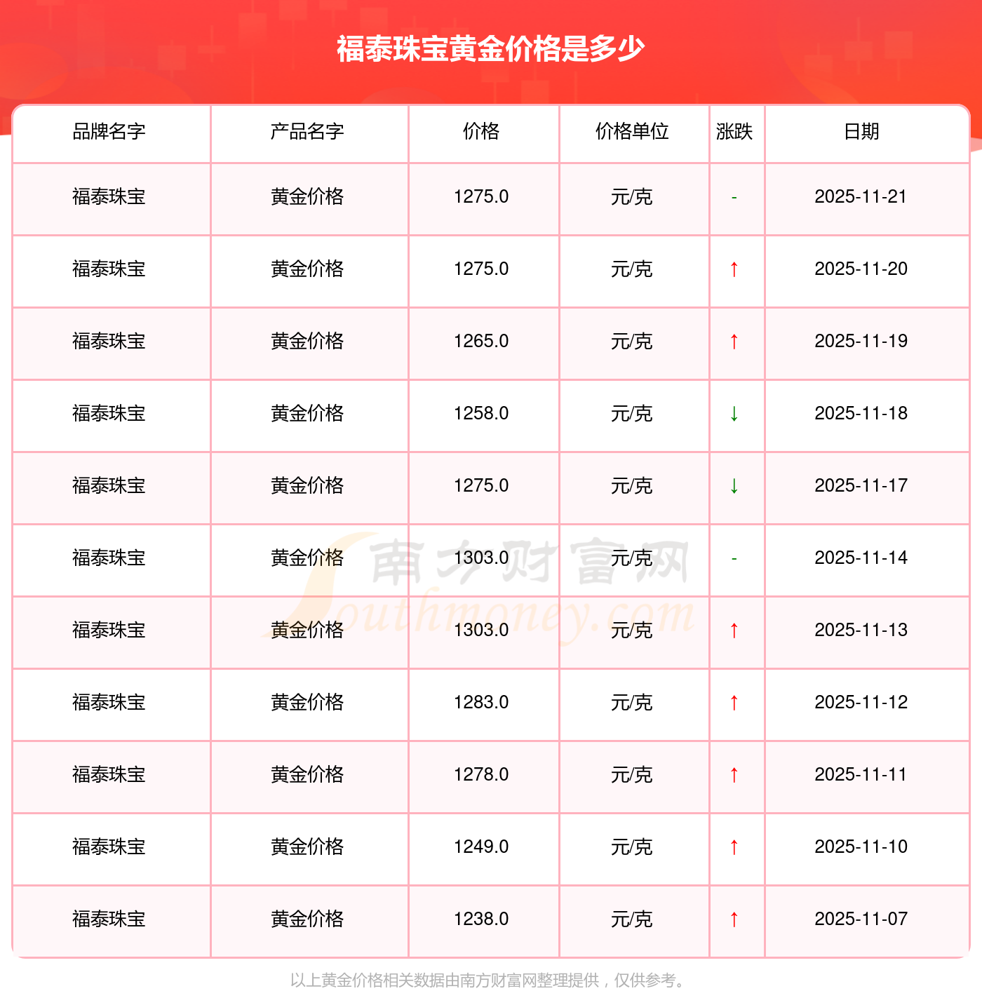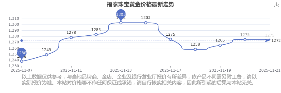 1275.0元/克是福泰珠宝在今日给出的 黄金价格最新价格。
