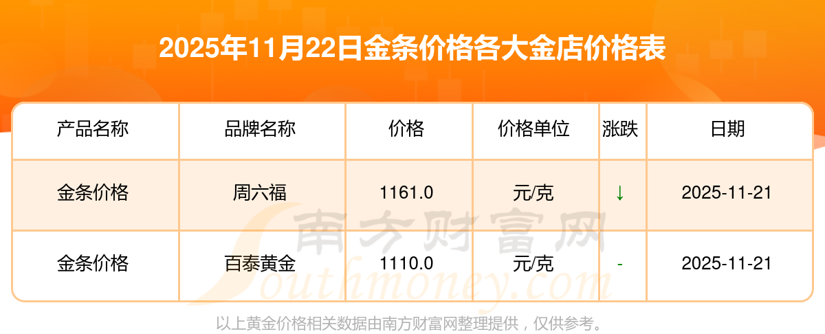 2025年11月22日各大金店金条价格多少一克?各大金店金条价格报价一览表,一起来看看吧!