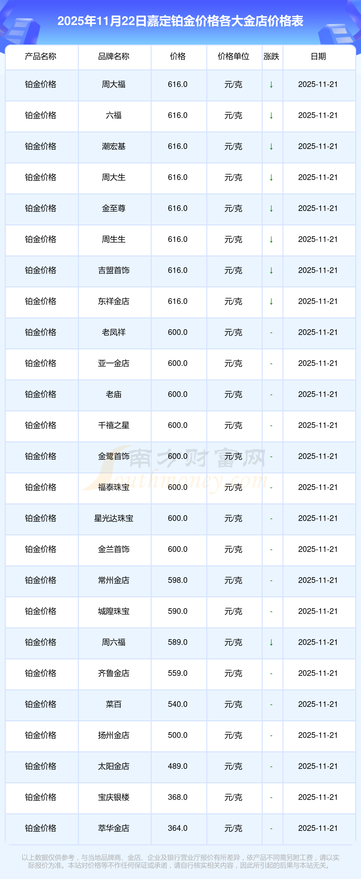 一、 嘉定各金店铂金价格多少钱1克?嘉定各金店铂金价格最新详情