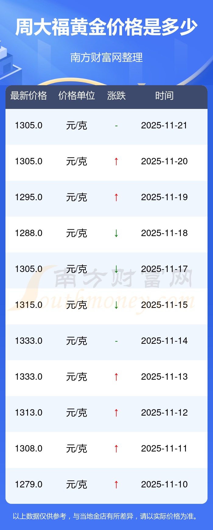 以上数据仅供参考,与当地金店有所差异,请以实际价格为准。