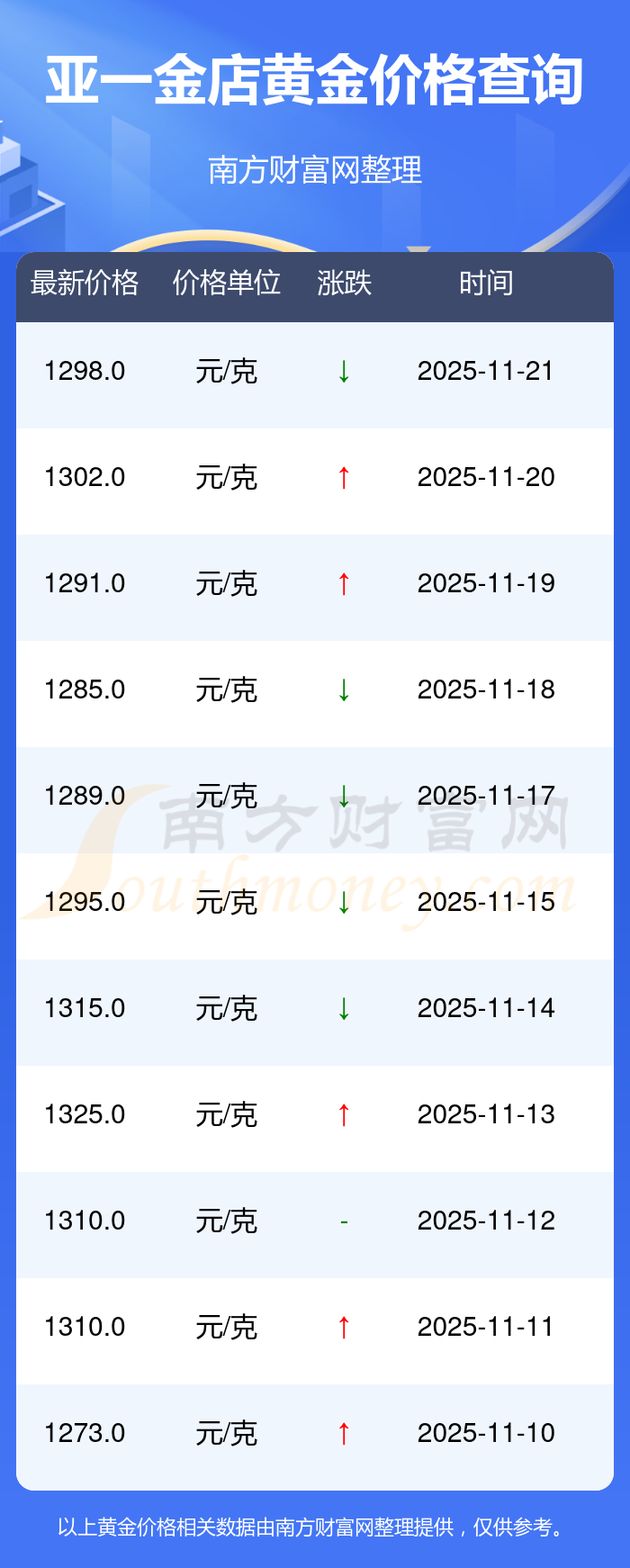 2025年11月22日亚一金店现在黄金价格多少一克呢?(今日黄金价格表),一起来看看吧!