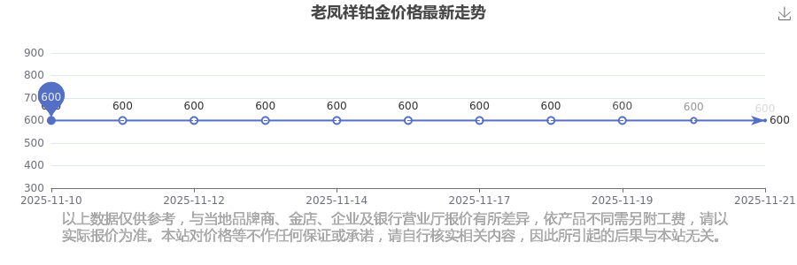 2025年11月22日老凤祥铂金价格查询:600.0元/克。