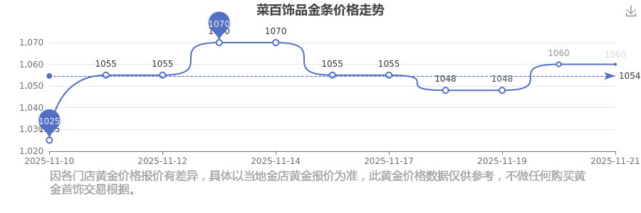 当下,菜百 饰品金条价格今日的最新价格是1060.0元/克。
