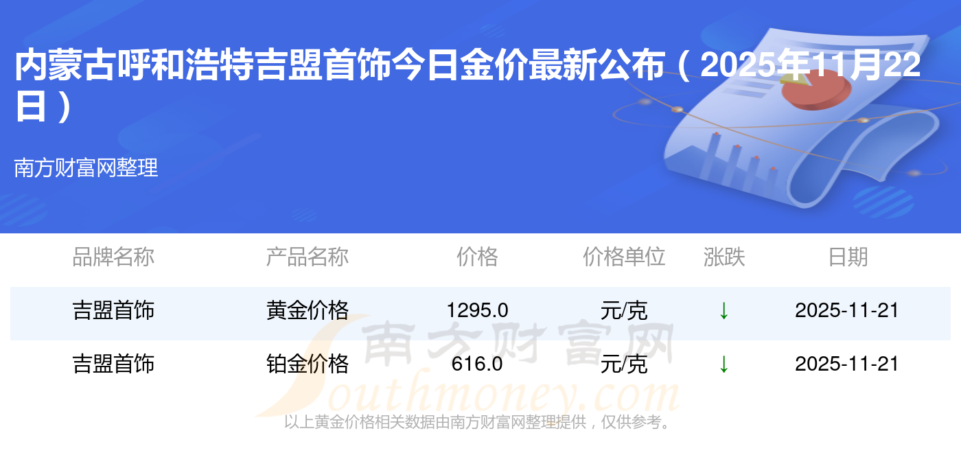2025年11月22日内蒙古呼和浩特吉盟首饰一克黄金的售价是多少:黄金价格1305.0元/克,铂金价格616.0元/克,饰品金价(内地)1305.0元/克,黄金饰品(香港)45110.0,铂金价格(香港)17570.0,金条价格(香港)40690.0,金条金价(内地)1143.0元/克,黄金价格1298.0元/克,铂金价格600.0元/克,足金价格1298.0元/克,黄金价格1266.0元/克。
