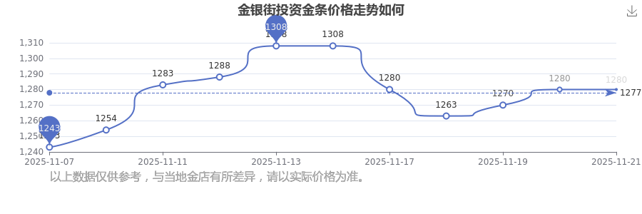 今日金银街 投资金条的最新定价为1280.0元/克。