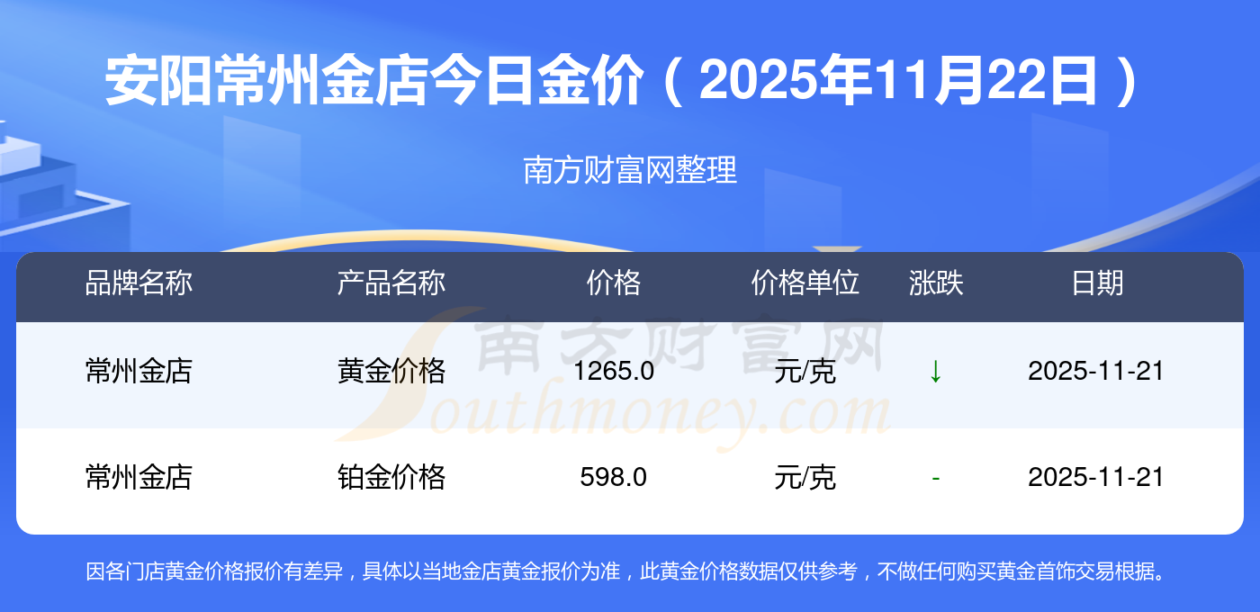 现在安阳常州金店黄金价格表_安阳常州金店黄金多少钱一克(2025年11月22日)
