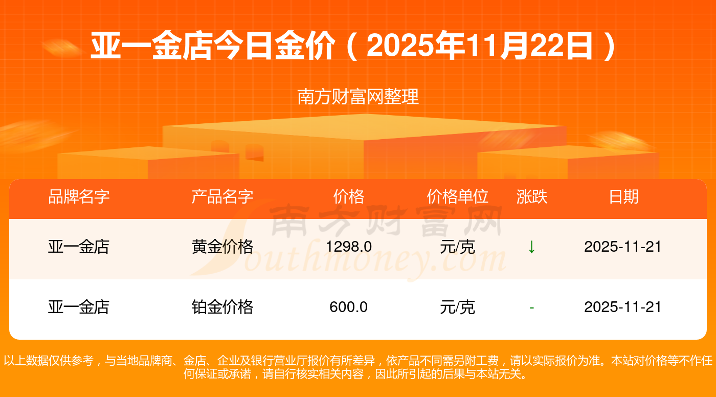 亚一金店今日金价查询
