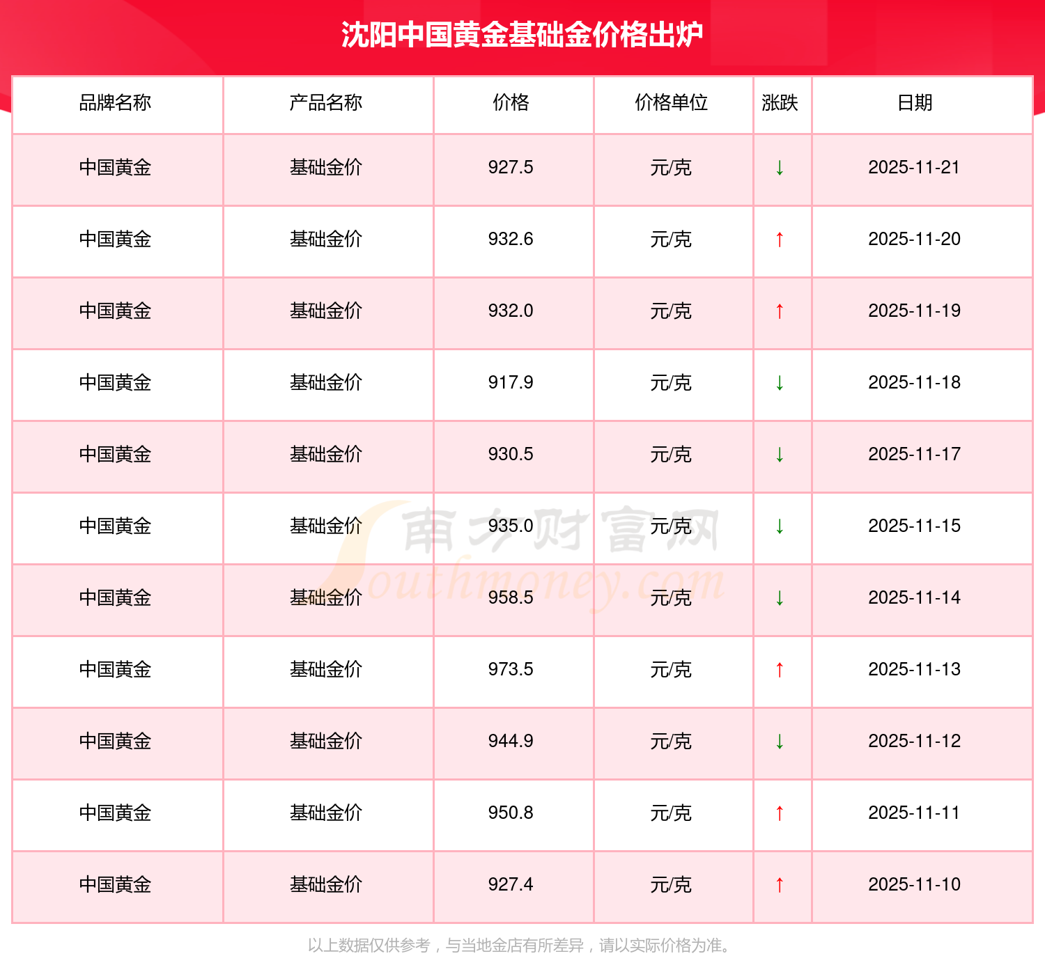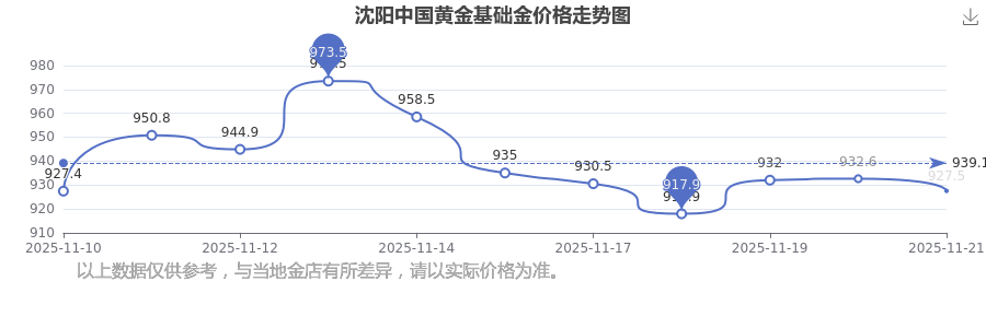 927.5元/克,这是沈阳中国黄金于 2025年11月22日所定的基础金价格。