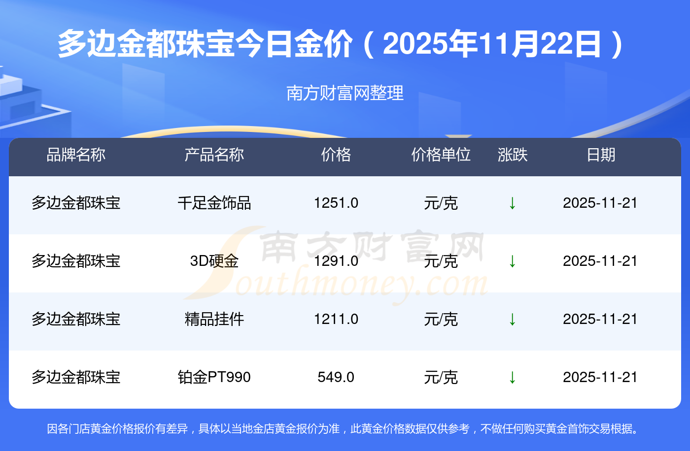 2025年11月22日多边金都珠宝金条多少钱1克 现在上海多边金都珠宝黄金价格查询
