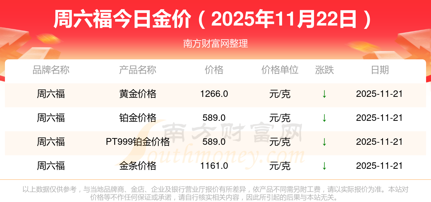 以上数据仅供参考,与当地品牌商、金店、企业及银行营业厅报价有所差异,依产品不同需另附工费,请以实际报价为准。本站对价格等不作任何保证或承诺,请自行核实相关内容,因此所引起的后果与本站无关。