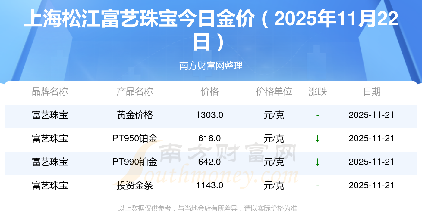 黄金收益是怎么计算?2025年上海松江富艺珠宝黄金价格实时查询,详情如下: