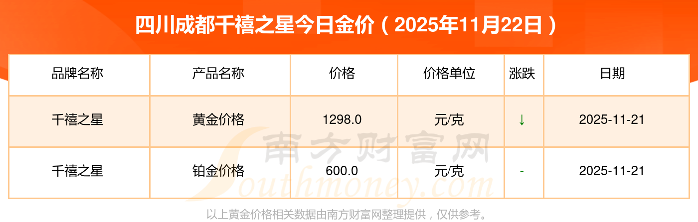 想查询今日黄金价格,当下黄金一克具体售价几何?四川成都千禧之星每克黄金在市场上卖多少钱:黄金价格1305.0元/克,铂金价格616.0元/克,饰品金价(内地)1305.0元/克,黄金饰品(香港)45110.0,铂金价格(香港)17570.0,金条价格(香港)40690.0,金条金价(内地)1143.0元/克,黄金价格1298.0元/克,铂金价格600.0元/克,足金价格1298.0元/克,黄金价格1266.0元/克。