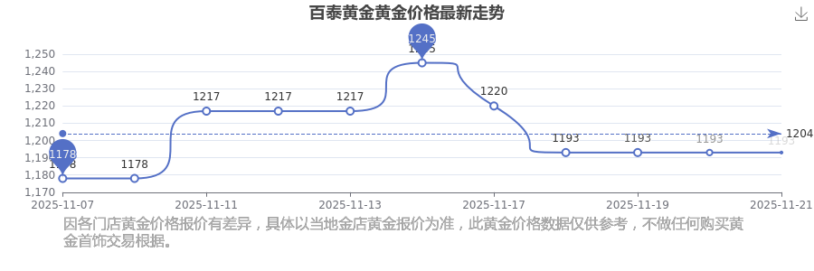 今天黄金价格几何?现在每克黄金值多少钱?黄金是优良的导电导热材料,具备良好的导热特性。它常被用在电子工业的特殊电路设计中,由于化学稳定性高、抗氧化性强,能制作出高精度电子元件。2025年11月22日百泰黄金黄金价格查询:1193.0元/克。