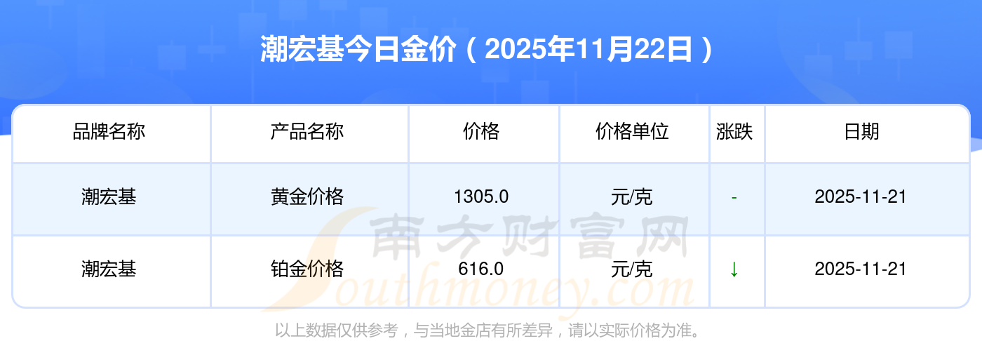 黄金价格1305.0元/克,铂金价格616.0元/克,饰品金价(内地)1305.0元/克,黄金饰品(香港)45110.0,铂金价格(香港)17570.0,金条价格(香港)40690.0,金条金价(内地)1143.0元/克,黄金价格1298.0元/克,铂金价格600.0元/克,足金价格1298.0元/克,黄金价格1266.0元/克。