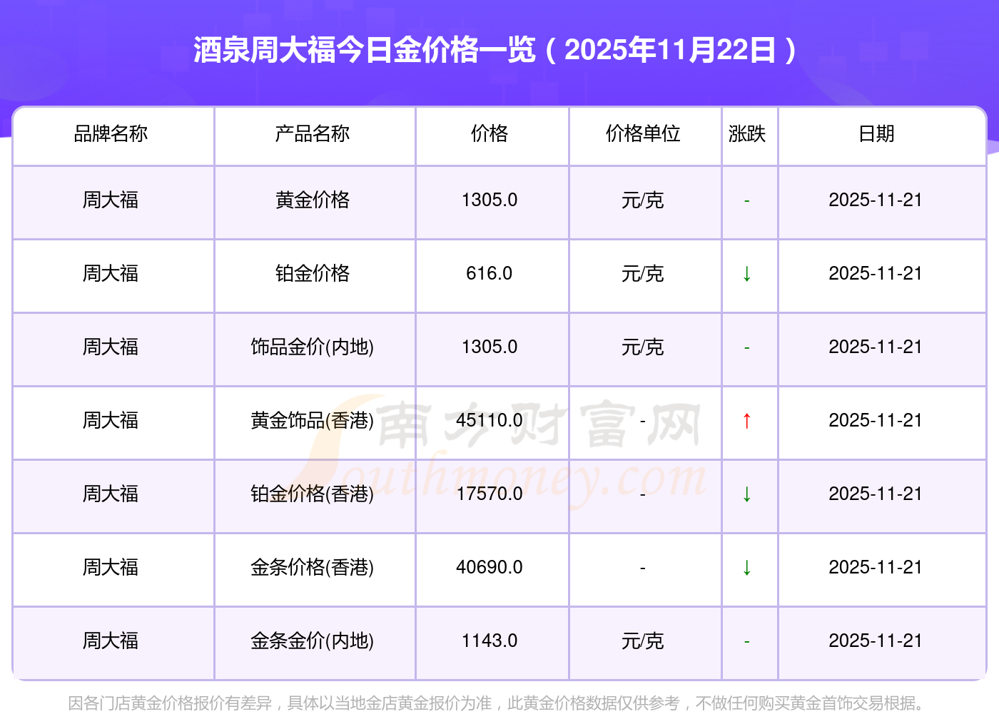 2025年11月22日周大福金条金价查询_今日酒泉周大福金价表一览