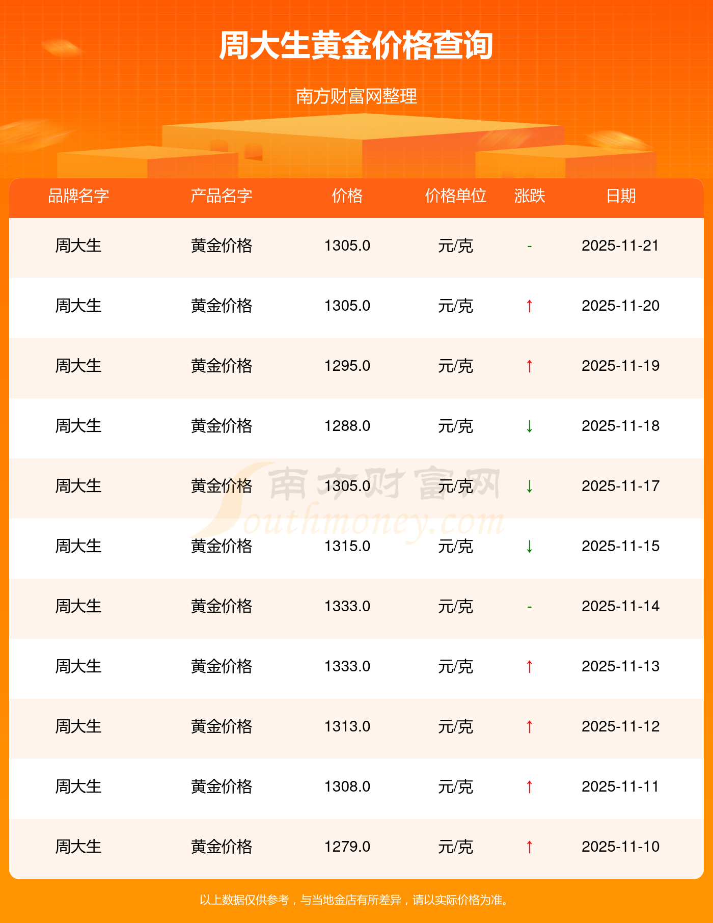 以上数据仅供参考,与当地金店有所差异,请以实际价格为准。