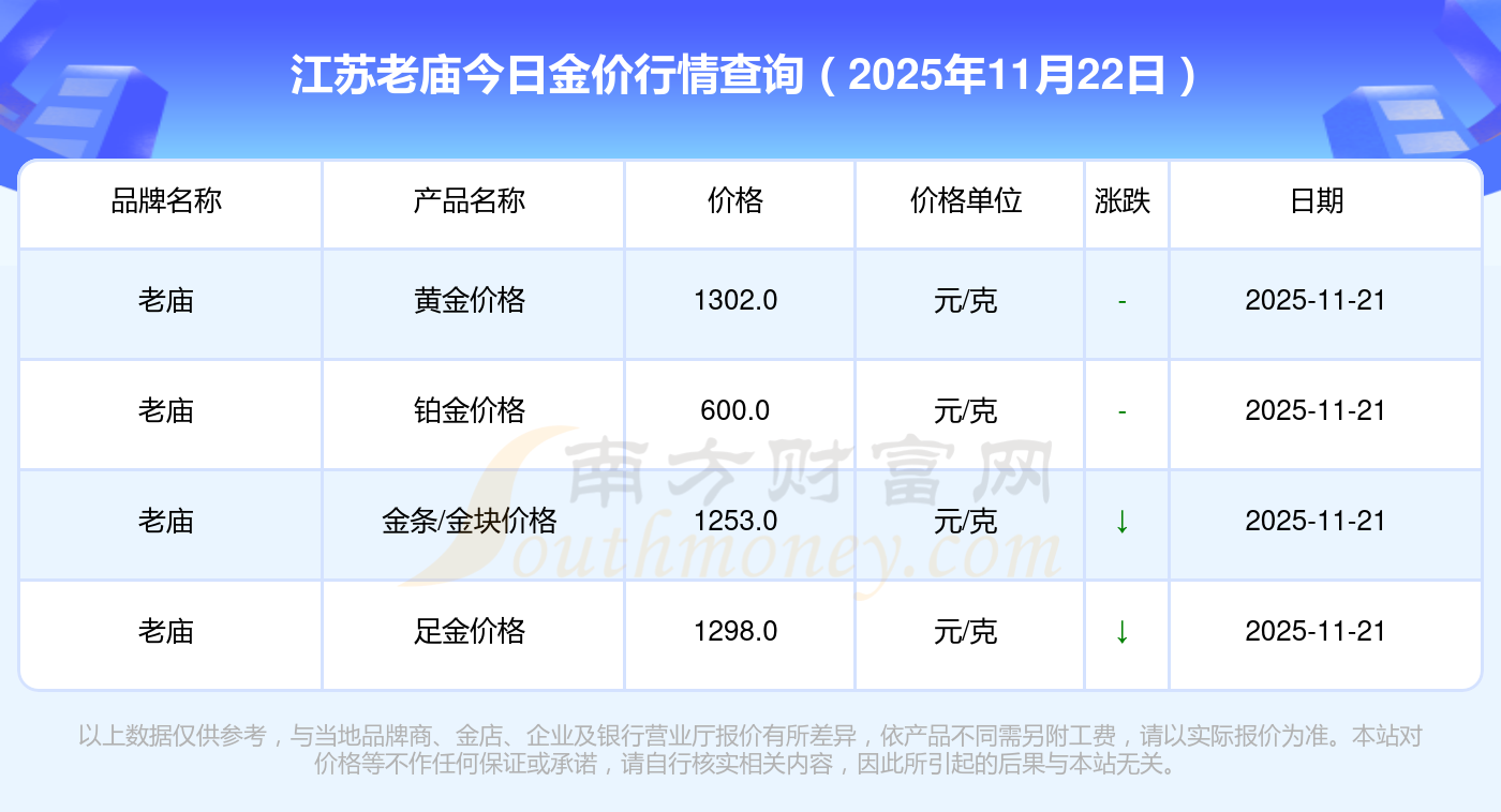 以上数据仅供参考,与当地品牌商、金店、企业及银行营业厅报价有所差异,依产品不同需另附工费,请以实际报价为准。本站对价格等不作任何保证或承诺,请自行核实相关内容,因此所引起的后果与本站无关。