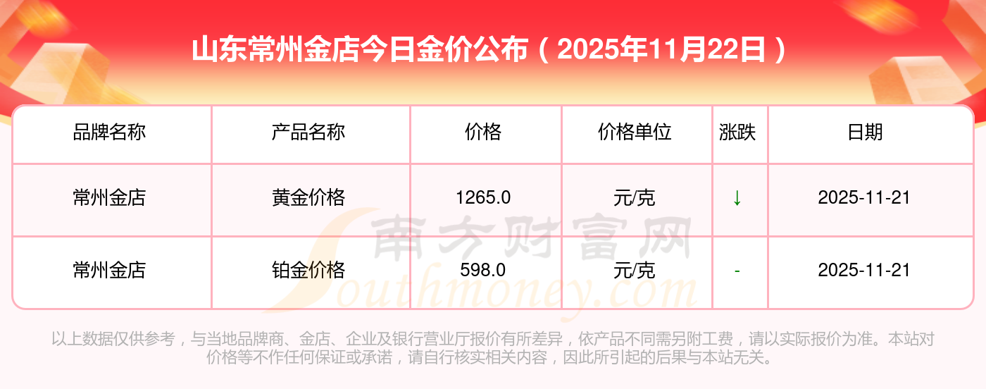 今日金价多少一克_2025年11月22日山东常州金店黄金价格查询表来了,随小编来了解一下详情。