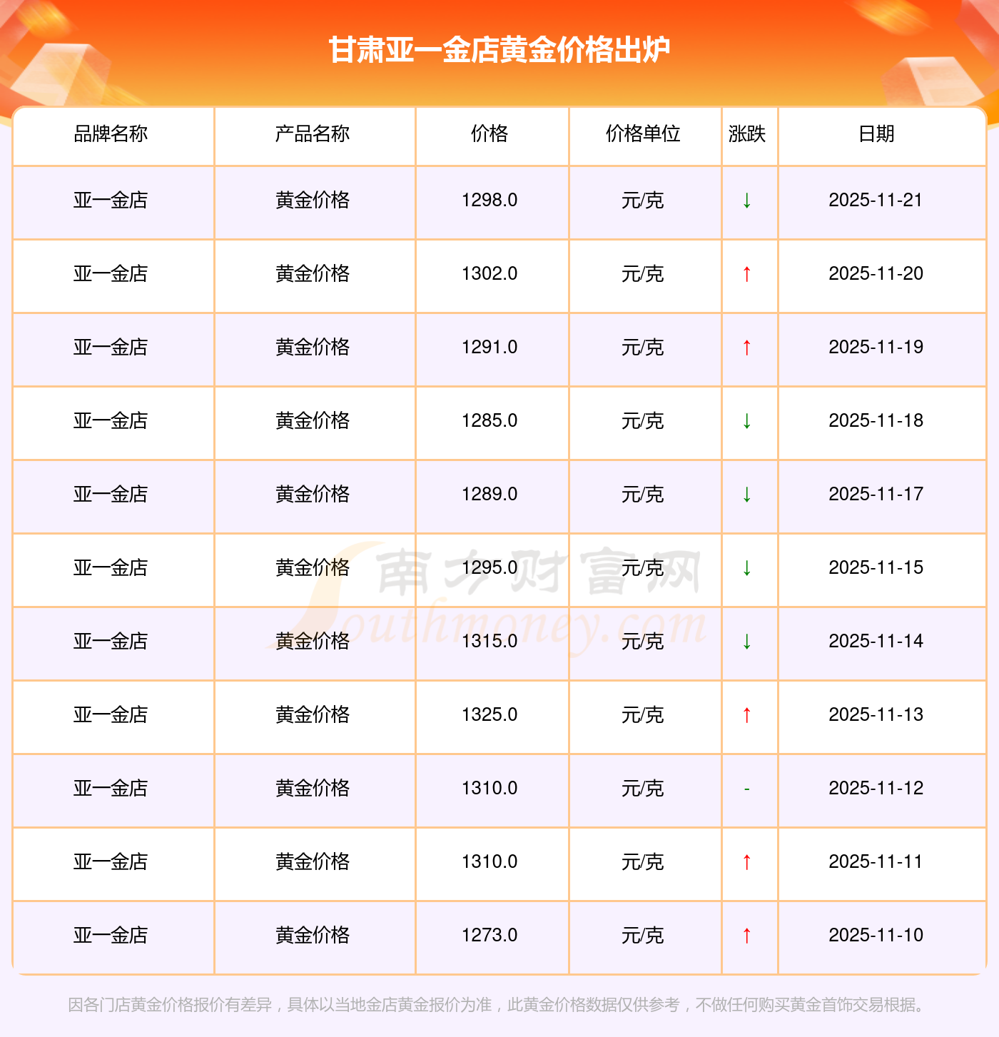 2025年11月22日,周大福、周大福、周大福、周大福、周大福、周大福、周大福、老凤祥、老凤祥、老凤祥、周六福等各大金店品牌黄金价格今日价格如下:周大福1305.0元/克、周大福616.0元/克、周大福1305.0元/克、周大福45110.0、周大福17570.0、周大福40690.0、周大福1143.0元/克、老凤祥1298.0元/克、老凤祥600.0元/克、老凤祥1298.0元/克、周六福1266.0元/克。