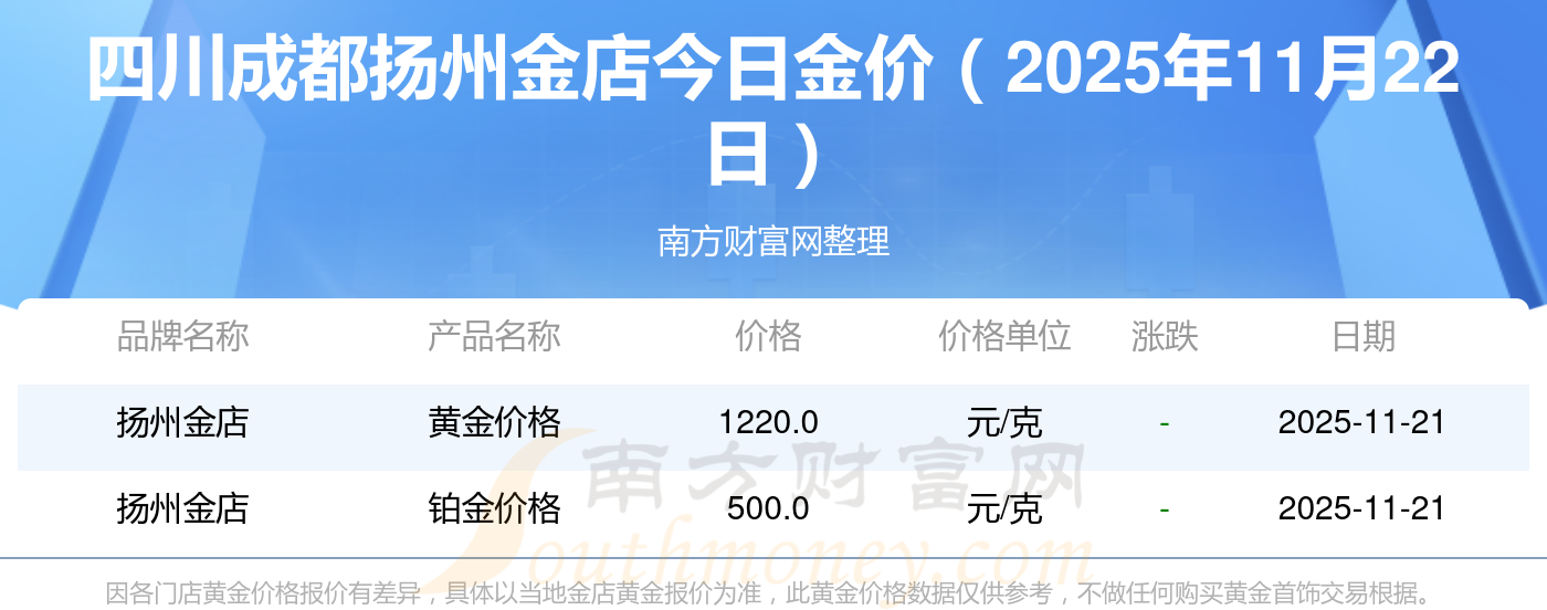2025年11月22日四川成都扬州金店今日金价(_2025年扬州金店金价多少钱一克),随小编来了解一下详情。