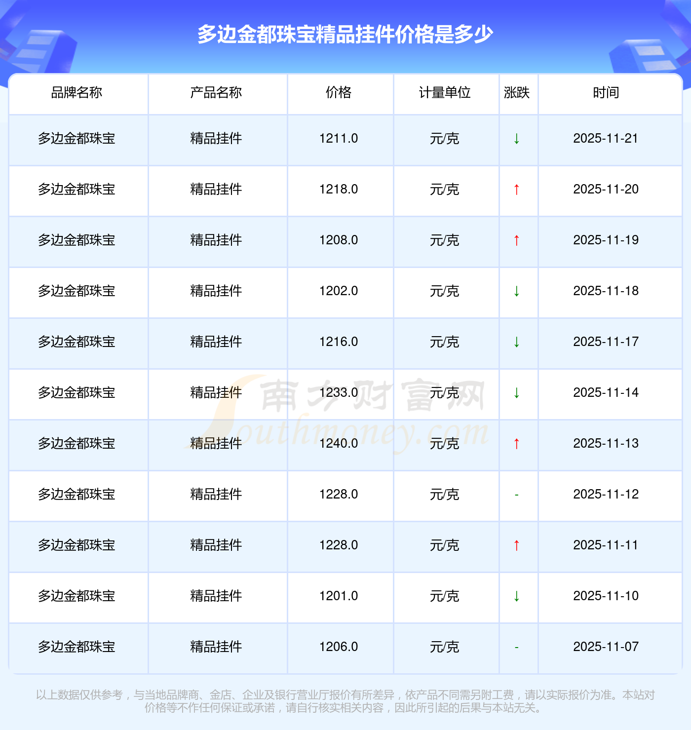 2025年11月22日多边金都珠宝精品挂件目前一克多少钱?2025年精品挂件多少钱一克,一起来看看吧!