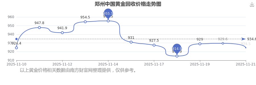 郑州中国黄金在 2025年11月22日,回收价的售卖价格是 924.5元/克。