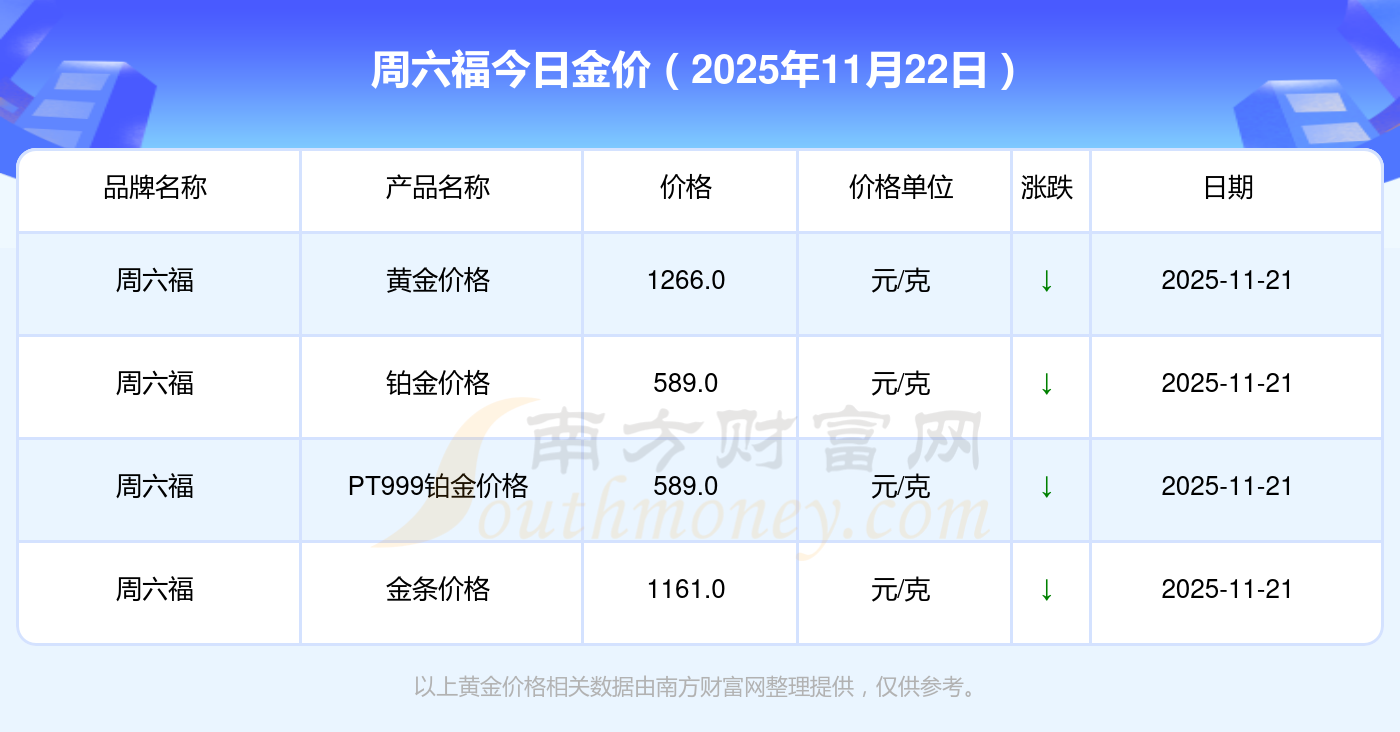 现在周六福黄金价格是多少钱1克_2025年周六福今日金价是多少钱一克,最新周六福查询,2025年11月22日周六福金条价格现在每克多少钱?最新周六福金条价格报价公布,一起来看看吧!