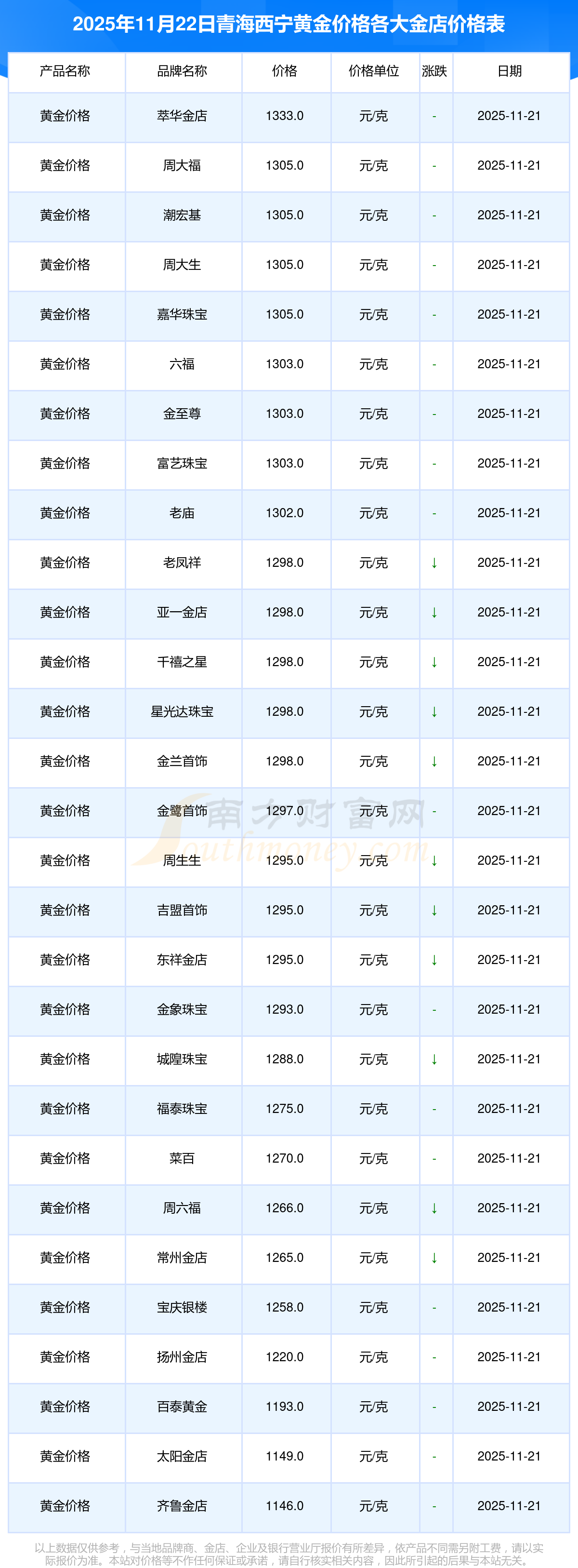 一、青海西宁各金店黄金价格表最新是多少钱,今日每克黄金在零售市场的价格是多少,最新黄金每克价格表单