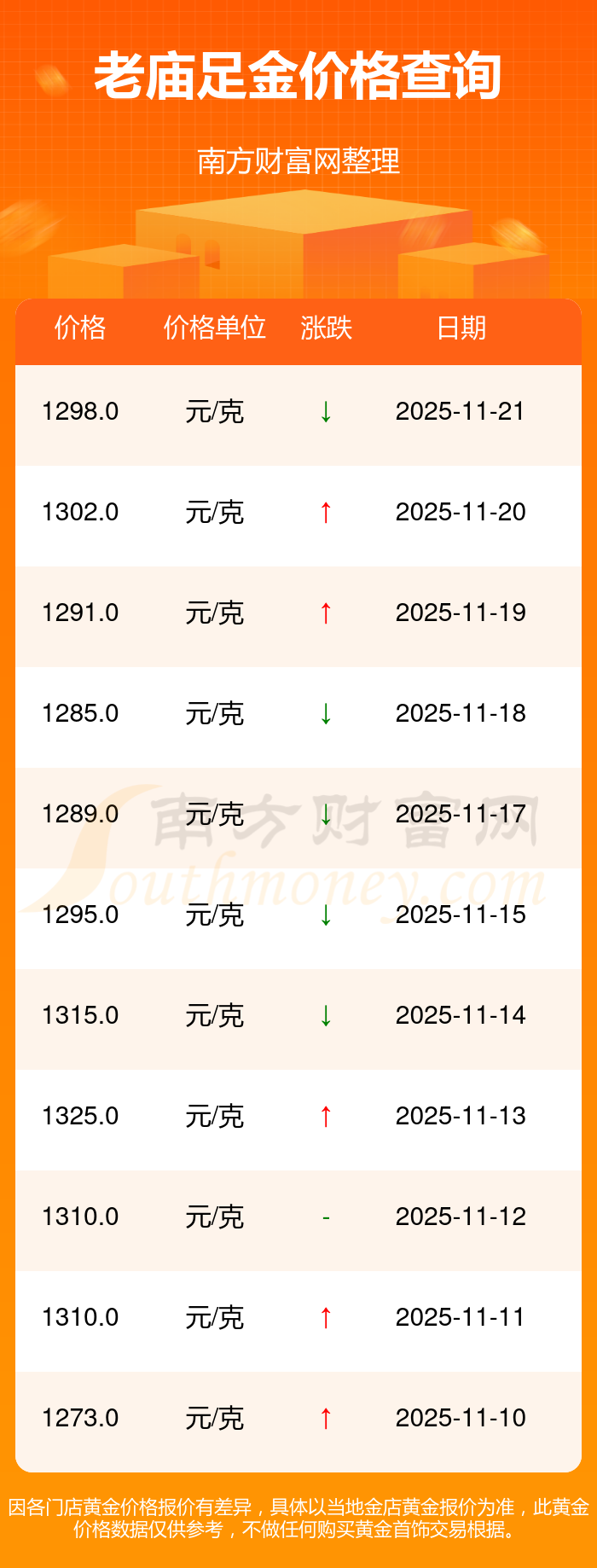 以上数据仅供参考,与当地品牌商、金店、企业及银行营业厅报价有所差异,依产品不同需另附工费,请以实际报价为准。本站对价格等不作任何保证或承诺,请自行核实相关内容,因此所引起的后果与本站无关。