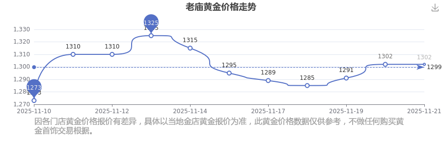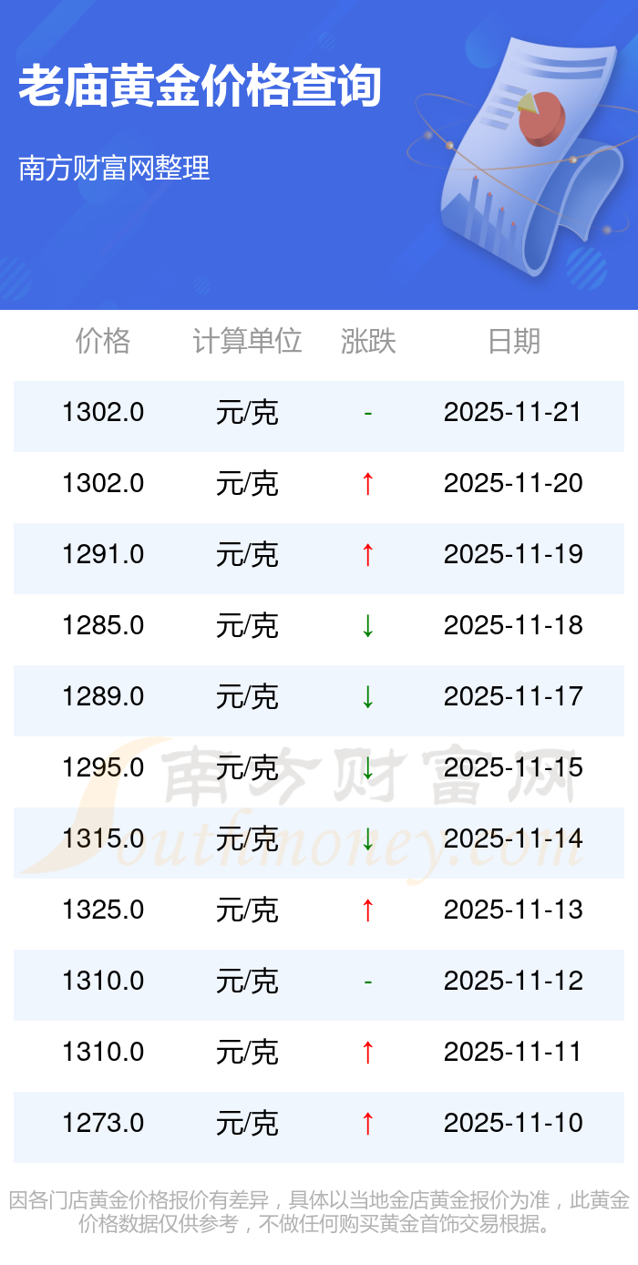 今日老庙黄金价格最新是1302.0元/克。