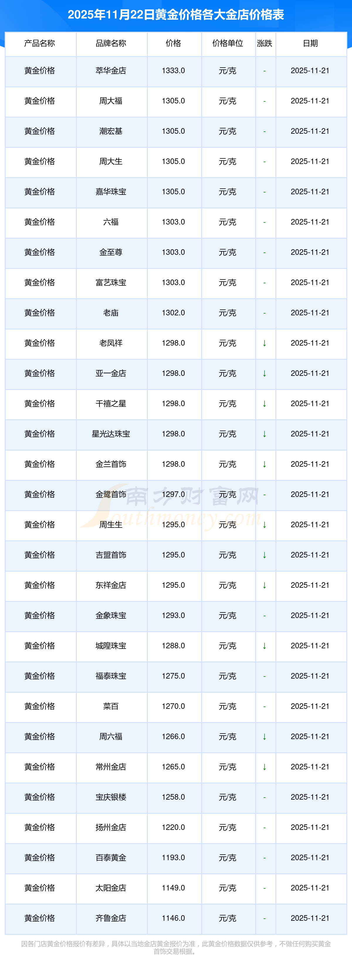 以上数据仅供参考,与当地金店有所差异,请以实际价格为准。